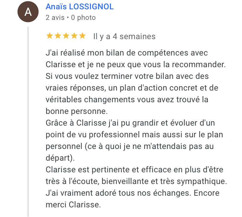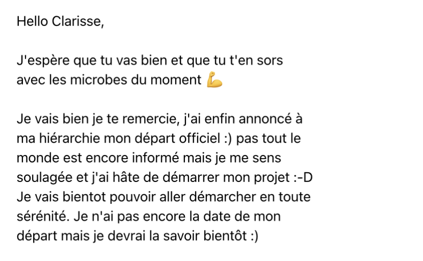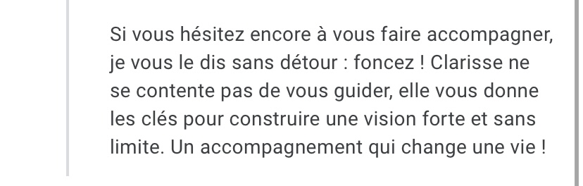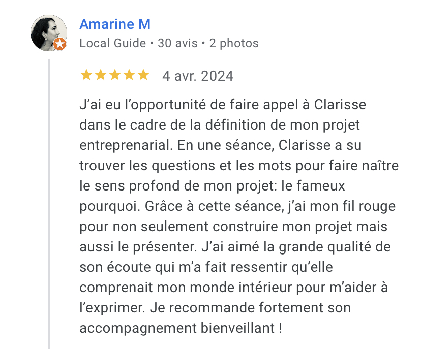 Si tu as des doutes ou d’autres questions qui ne sont pas mentionnées ici : sens toi libre de m’écrire par mail à clarisse.reveret@gmail.com ou de réserver un appel avec moi ici.